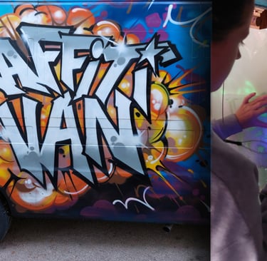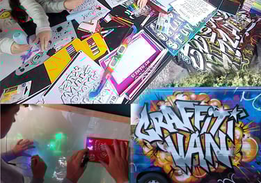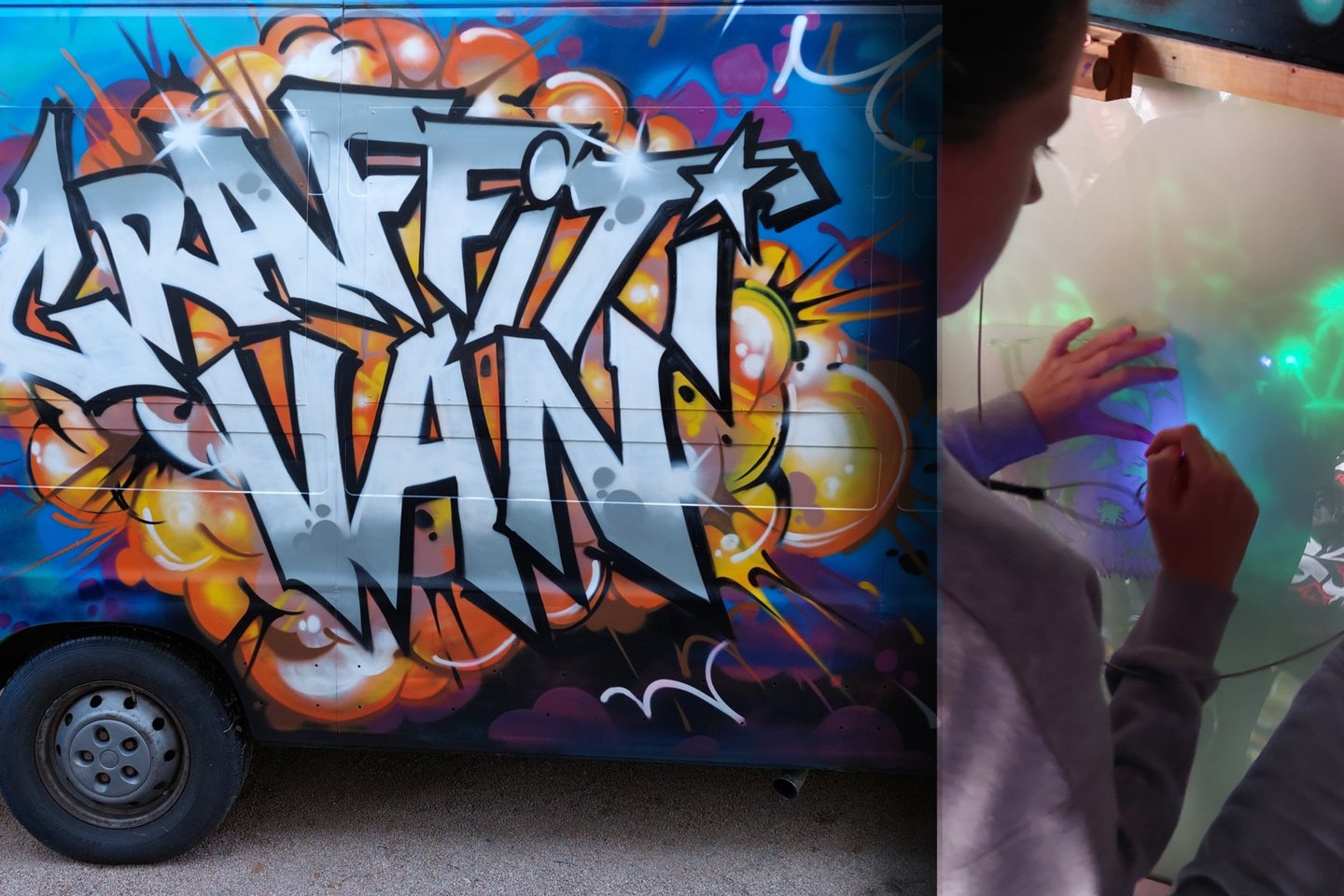 Above: The Graffiti Van often makes an appearance at Graffiti Church. Featuring a fantastic glow-in-the-dark graffiti wall onto which images can be created using UV torches.